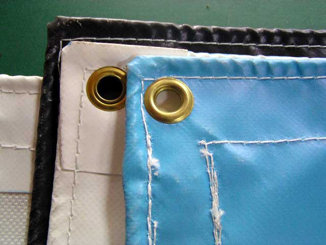 仕上げは周囲を補強し、取付け場所や取付け金具などに合わせて最適な位置にハトメを打って、最適な幕を作製いたします。